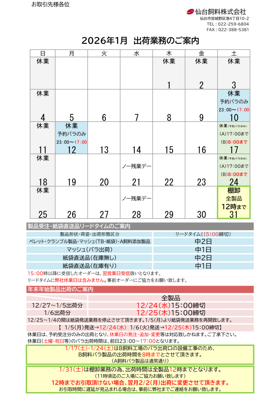 〒983-0001 宮城県仙台市宮城野区港4-10-2 営業時間 8:00 - 17:00 定休日:土・日・祝日