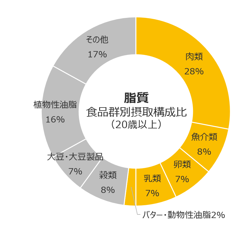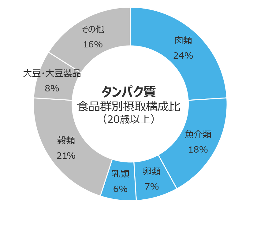 3大栄養素の内、タンパク質・脂質において、ともに5割以上を畜水産物から摂取しています。