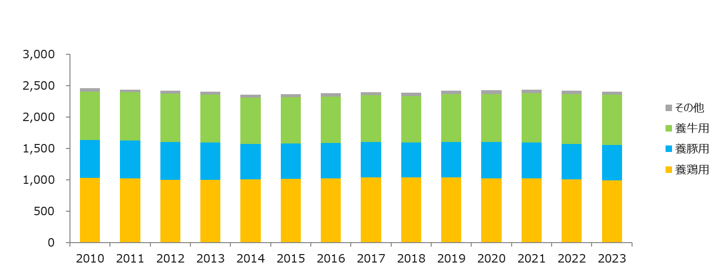 ◎畜産用配合飼料流通量について(農林水産省「飼料月報」より)